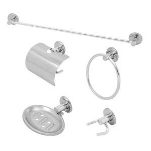 Kit 5 Pecas Banheiro Stander Papeleira Com Tampa Metal